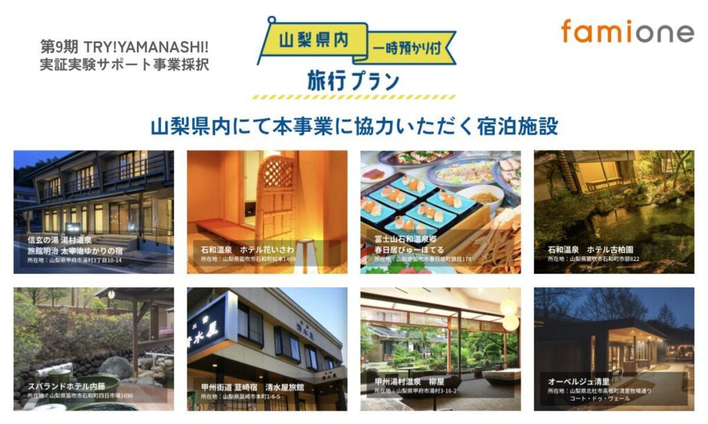 ファミワンは、山梨県が実施する、山梨県全域を対象にした実証実験を全面的にサポートする「第9期TRY!YAMANASHI!実証実験サポート事業」に採択されています。