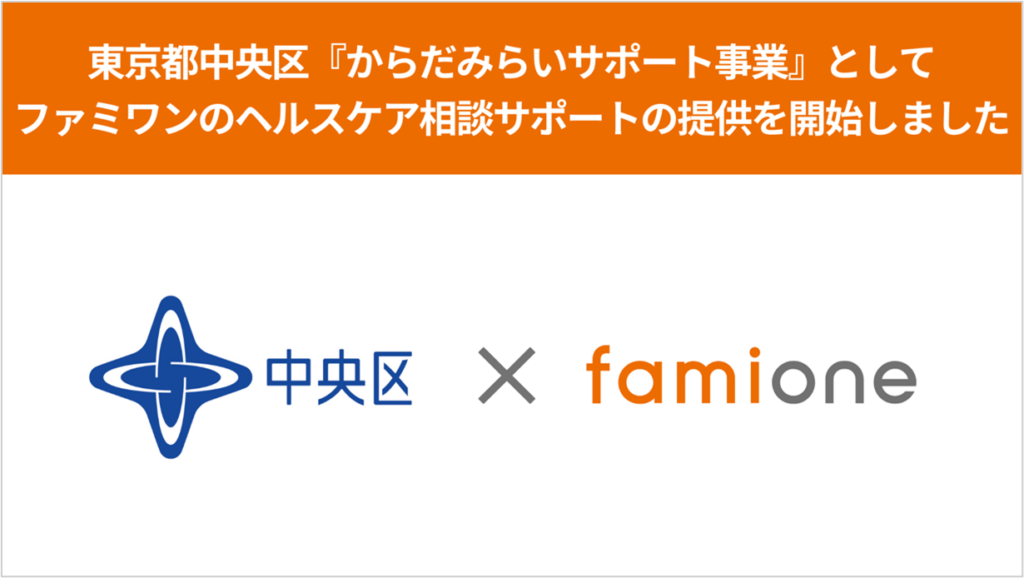 東京都中央区(区長:山本 泰人、以下中央区)からの委託を受け「からだみらいサポート事業 ちゅうおうプレコン相談」において、令和8年度よりファミワンのヘルスケア相談サポートの提供を開始しました。