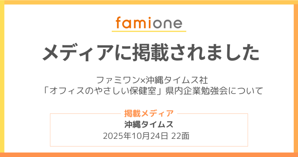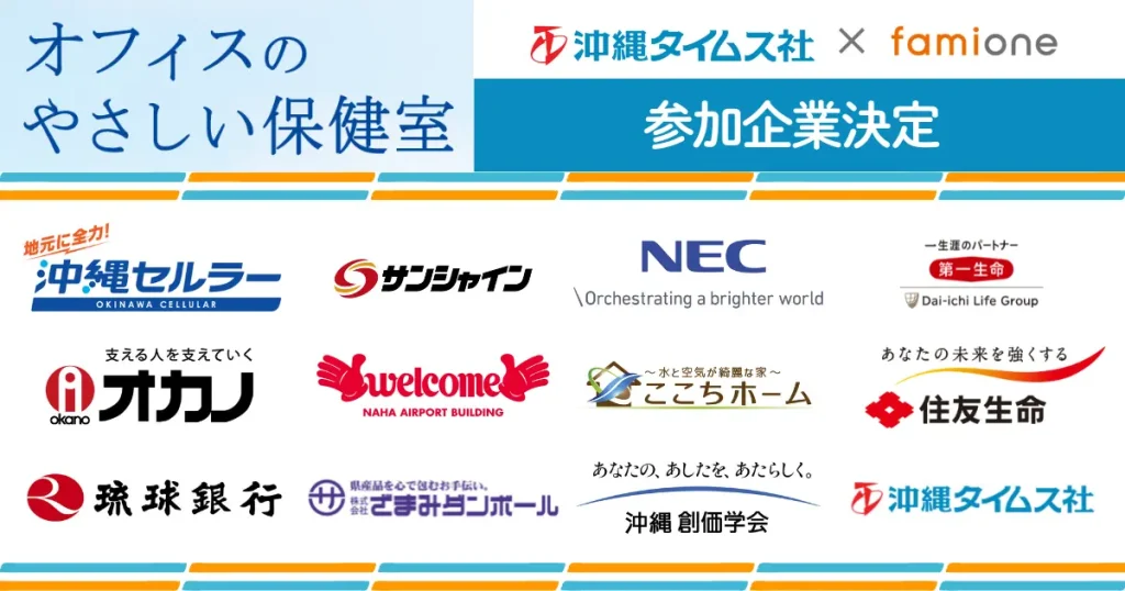 沖縄タイムス社とファミワンの協創プロジェクト「オフィスのやさしい保健室」の参加企業が決定しました
