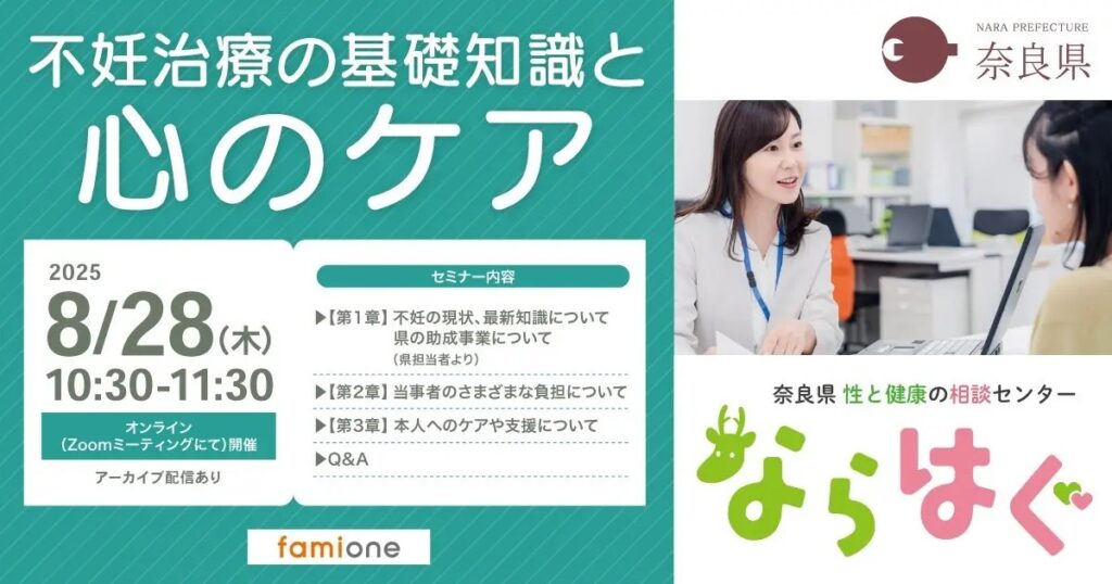 福島県いわき市にて、『妊活・不妊治療の「リアル」と「心構え」』と題した無料オンラインセミナーを10月26日に開催します