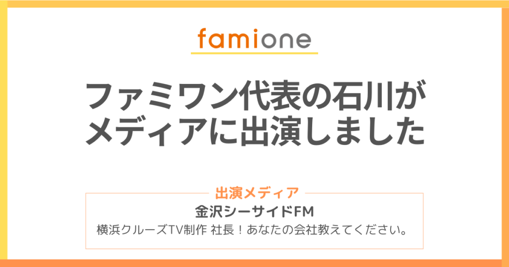 ファミワン代表・石川が金沢シーサイドFM「社長!あなたの会社教えてください。」に出演しました