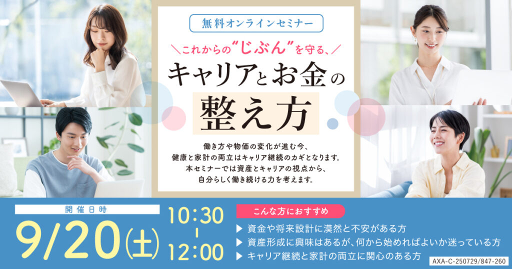 オンラインセミナー「これからの“じぶん”を守る、キャリアとお金の整え方」を9/20(土)に開催します