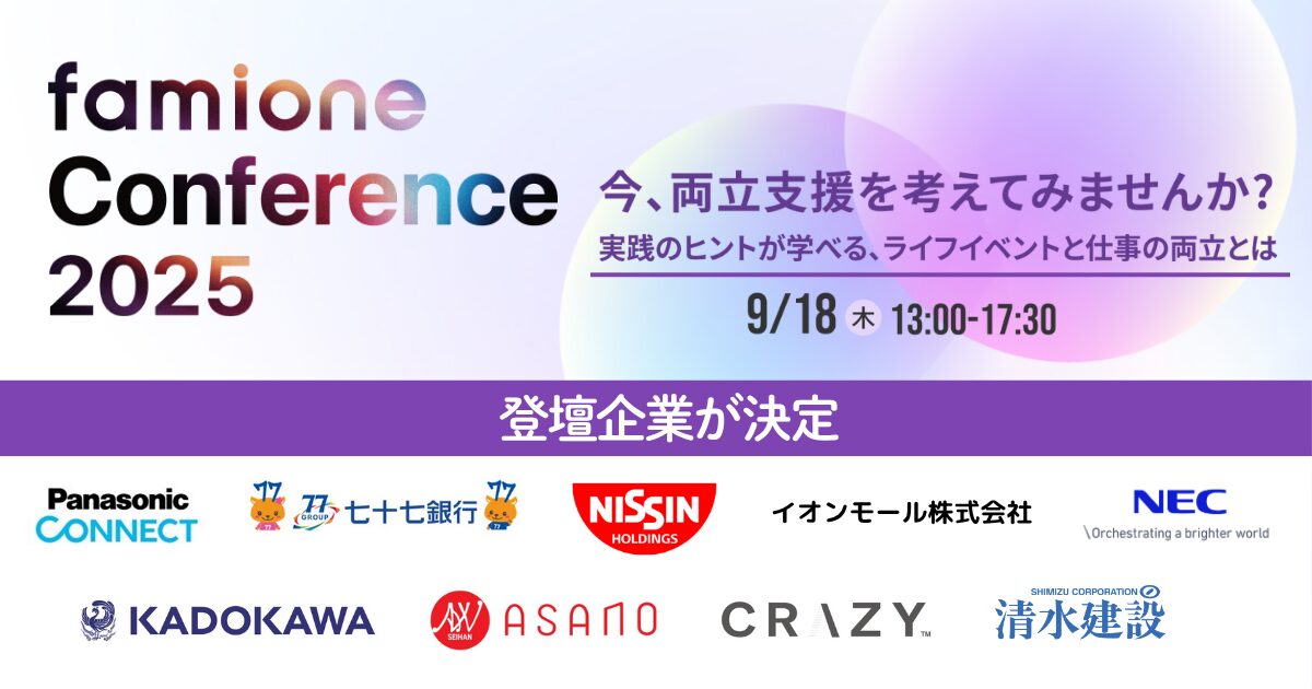 『今、両立支援を考えてみませんか?』をテーマに、毎年開催している「ファミワンカンファレンス2025」を9月18日に実施します