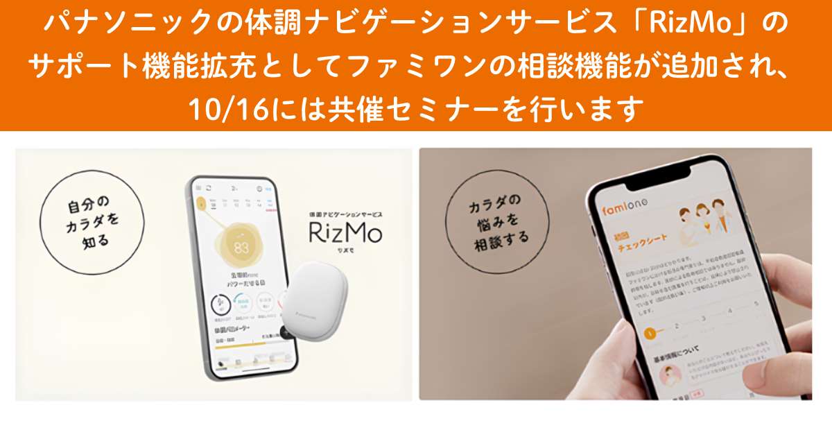 パナソニックの体調ナビゲーションサービス「RizMo」への相談機能提供と10/16 に共催セミナーを行います