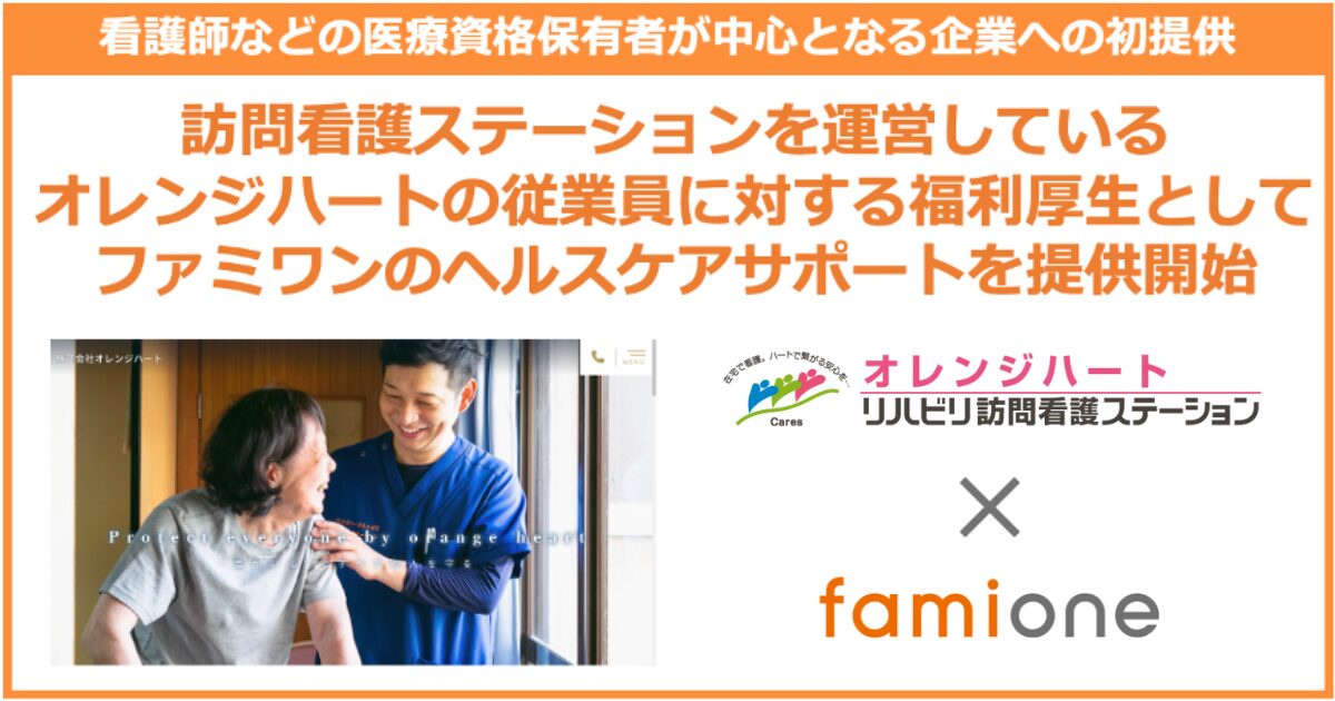 訪問看護ステーションを運営するオレンジハートに対し、福利厚生としてファミワンのヘルスケアサポートを提供開始しました