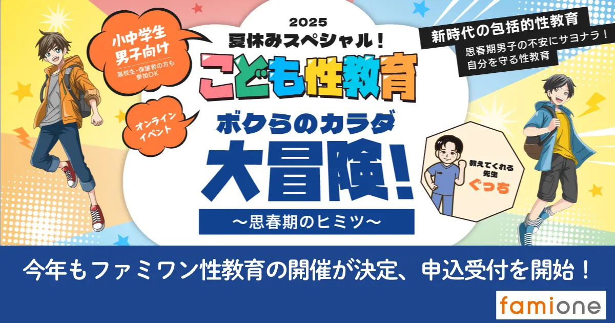 申込み殺到につき緊急増席決定!ファミワンの「こども性教育」セミナー2025年版は初の小中学男子向けで7月27日に開催!