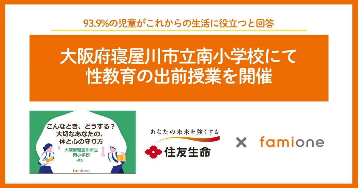 住友生命とファミワンの共創プロジェクトの一環として、大阪府寝屋川市立南小学校にて性教育の出前授業を開催