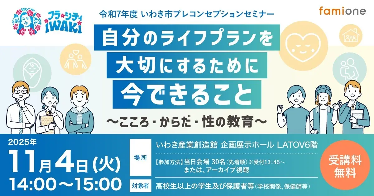 福島県いわき市にて高校生以上の学生と保護者等を対象としたプレコンセプションケアセミナーを11月4日に現地開催します