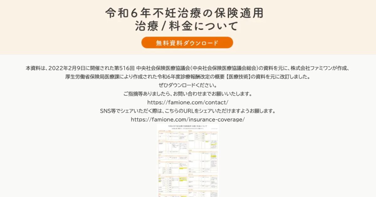 生殖医療に関連する「令和6年度診療報酬改定」を受け、ファミワンにて無料公開中の一覧表を改訂いたしました