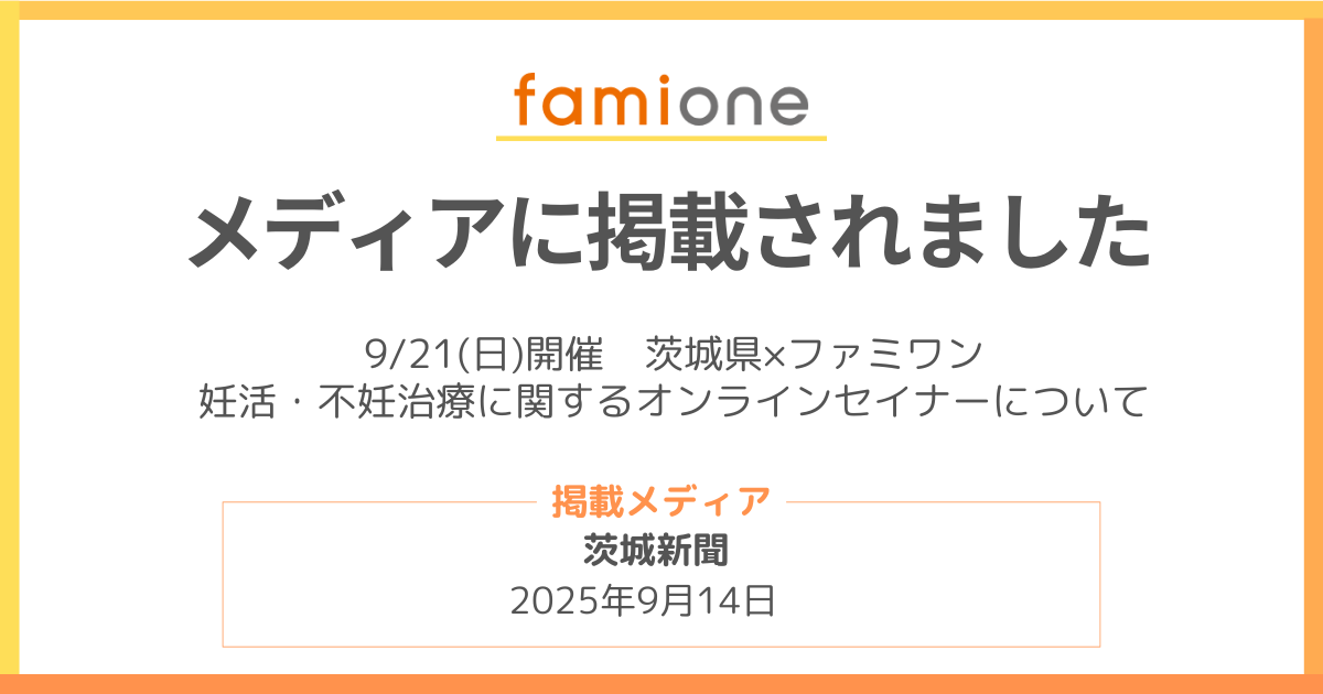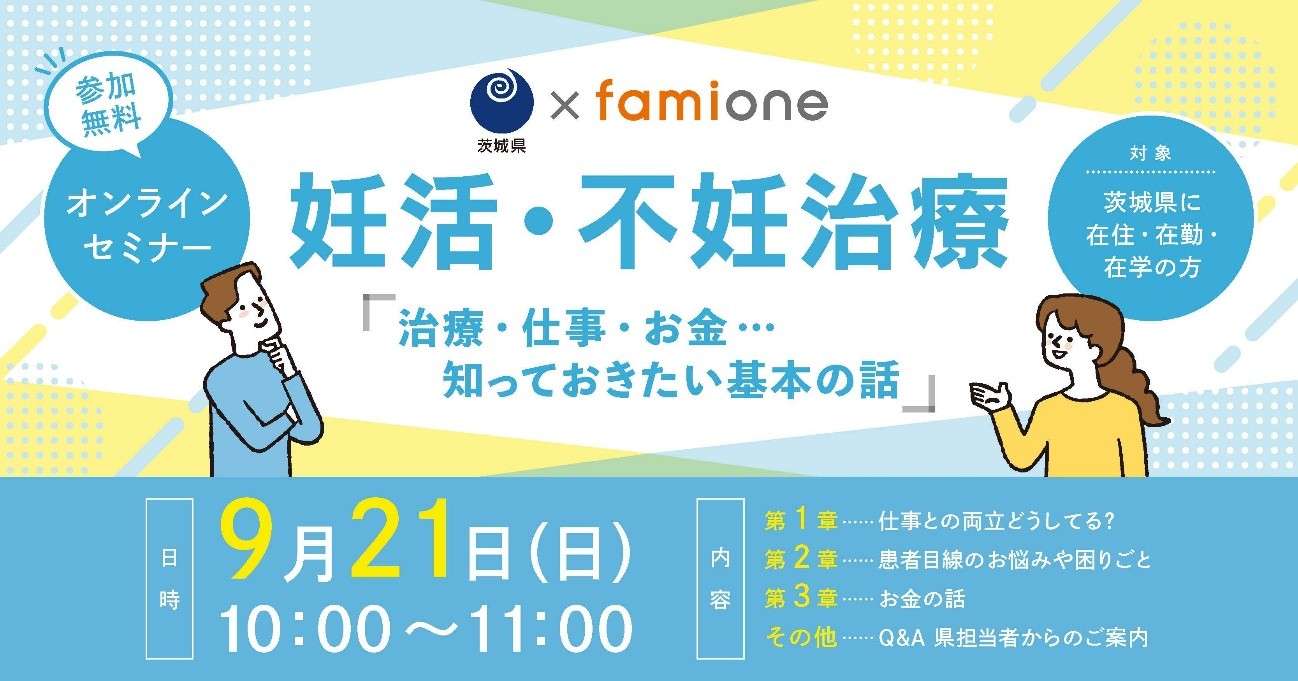 茨城県の『いばらき妊活・不妊オンライン相談』として「ファミワン」の提供を令和7年度も継続します