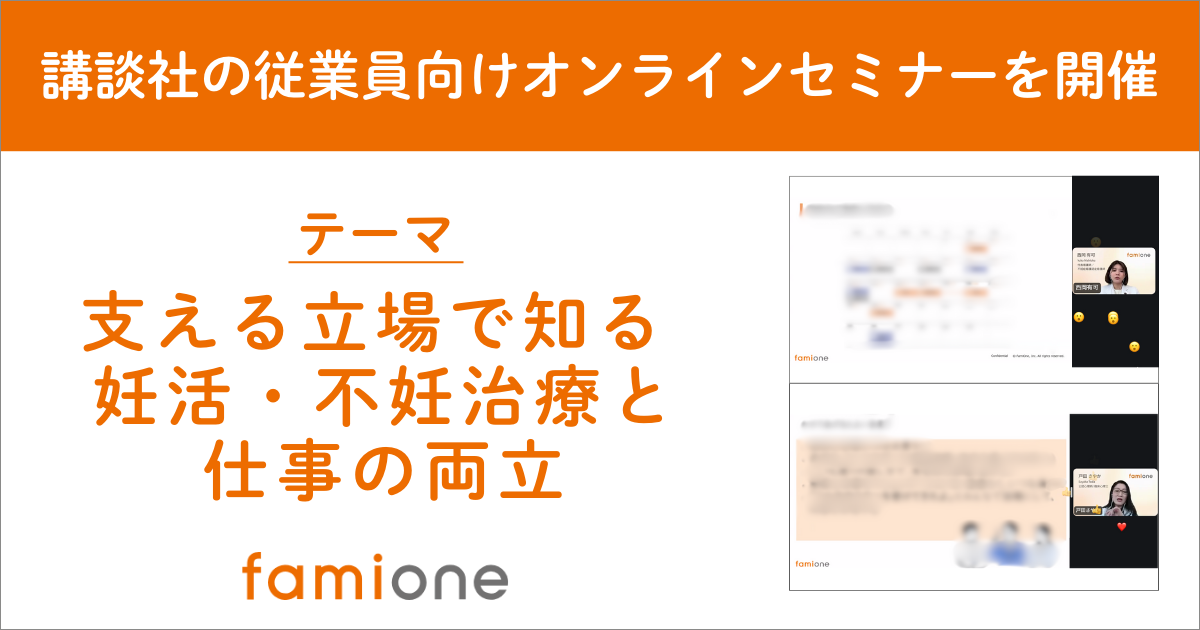 講談社の従業員向けに、「支える立場で知る 妊活・不妊治療と仕事の両立」をテーマにオンラインセミナーを開催