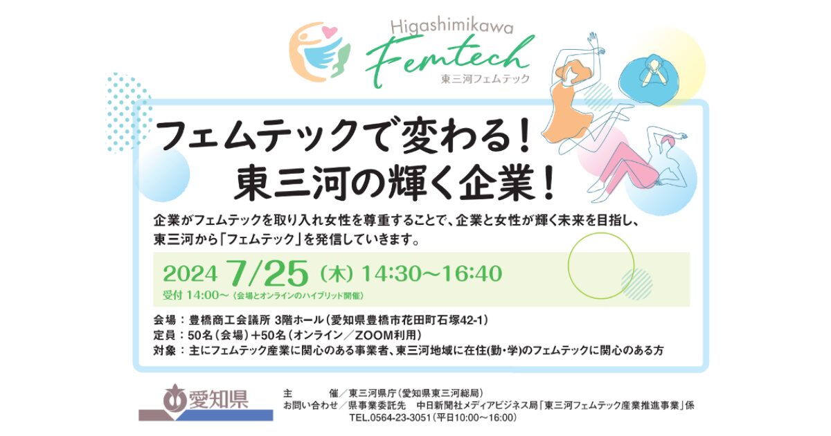 愛知県主催の「東三河フェムテック産業推進事業」が開催する企業向けのイベントに、ファミワン代表の石川が登壇します