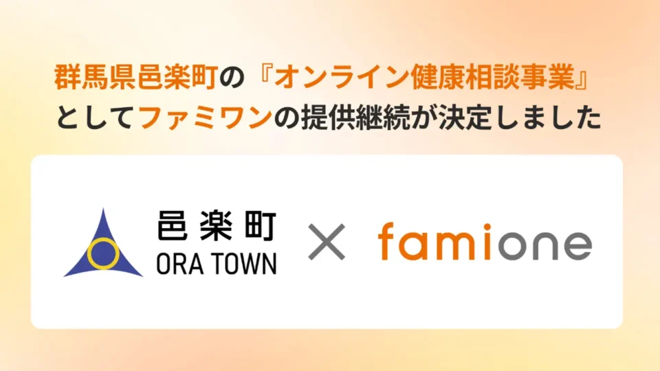 群馬県邑楽郡邑楽町の『オンライン健康相談事業』として、「ファミワン」の提供を令和8年度(2026年度)も継続します