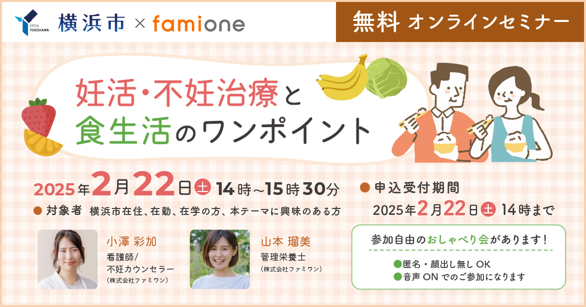 横浜市 ヨコハマ妊活SNS相談事業の一環として、無料オンラインセミナーを2月22日に開催します