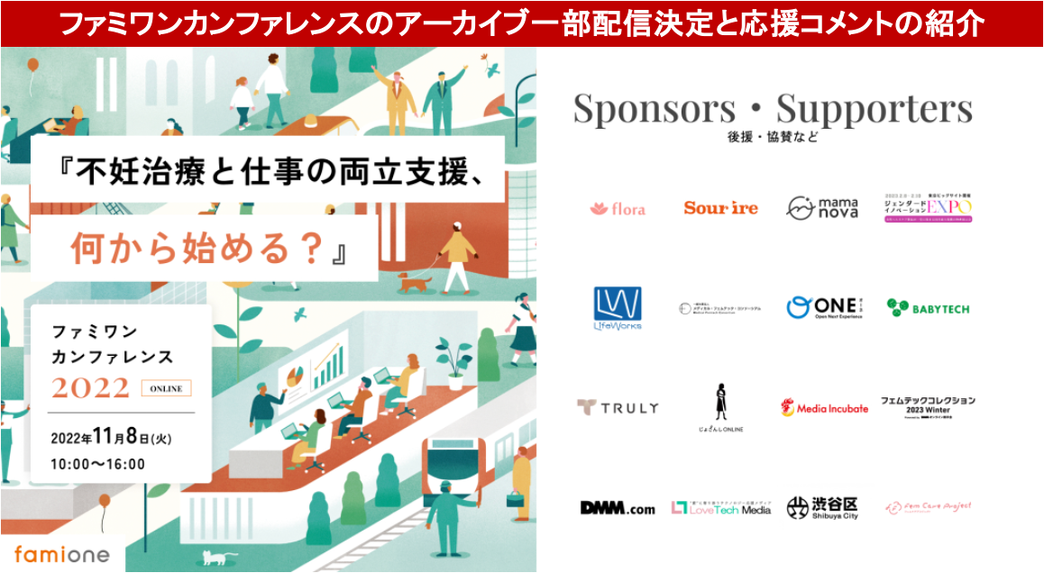 妊活・不妊治療と仕事の両立支援をテーマに開催する「ファミワンカンファレンス」にて、要望にお応えして事前申込者へのアーカイブの一部配信決定と、応援コメントを公表します