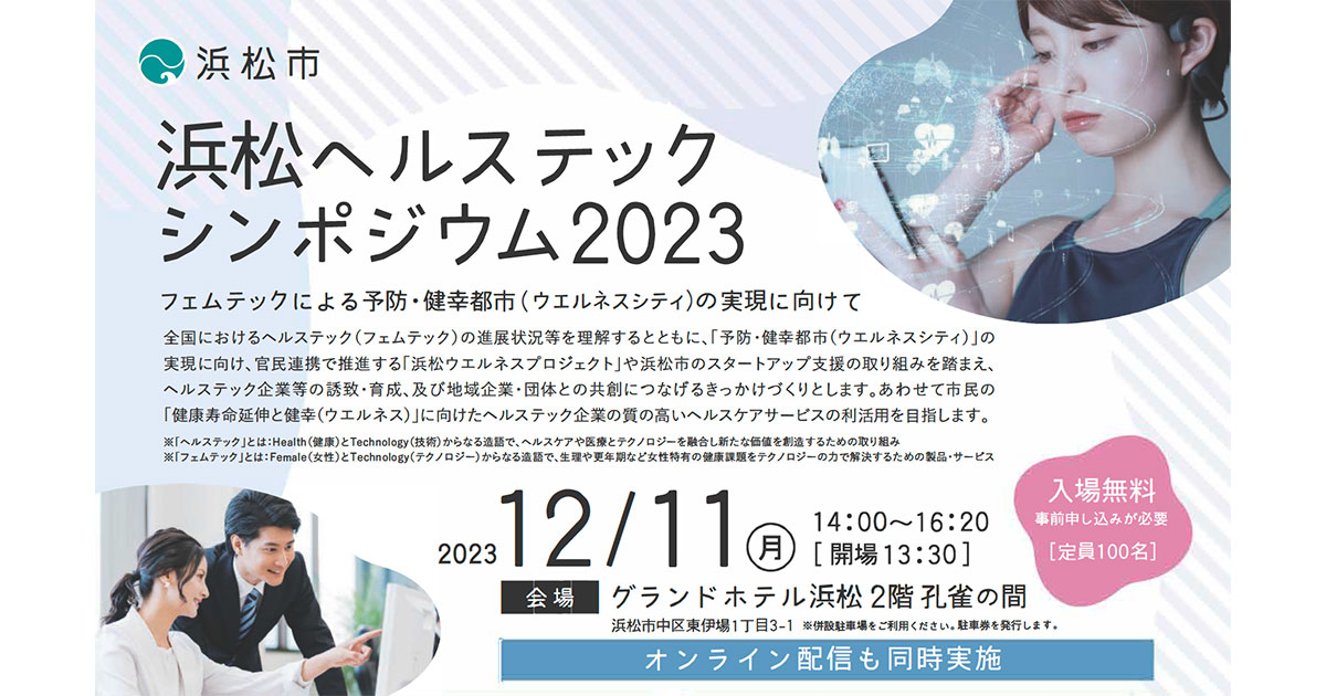 浜松市主催の「浜松ヘルステックシンポジウム2023」に、ファミワン代表の石川が登壇します