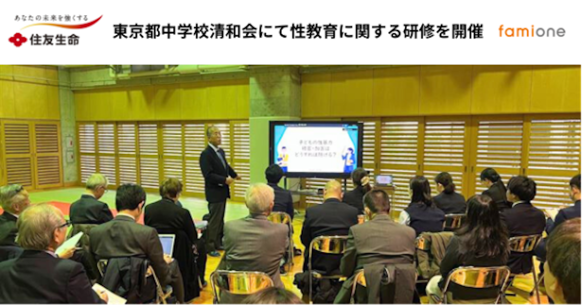 住友生命とファミワンの共創プロジェクトの一環として、東京都中学校清和会にて性教育に関する研修を開催