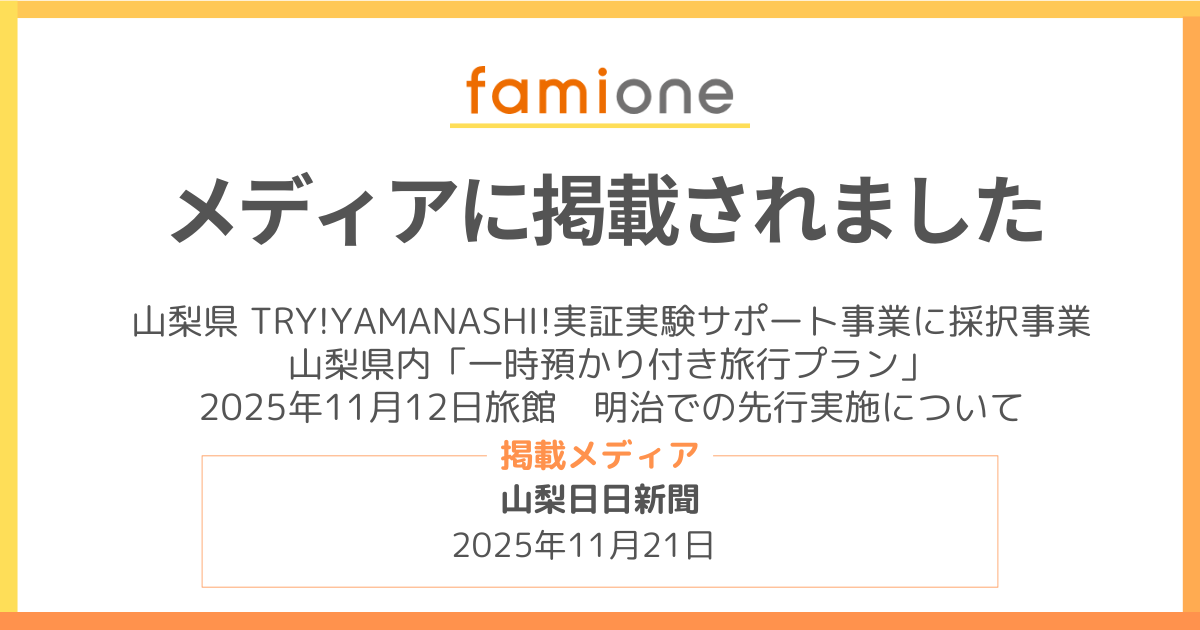 山梨県 TRY!YAMANASHI!実証実験サポート事業の「一時預かり付旅行プラン」先行実施が「山梨日日新聞」に掲載